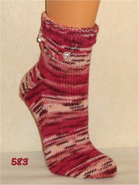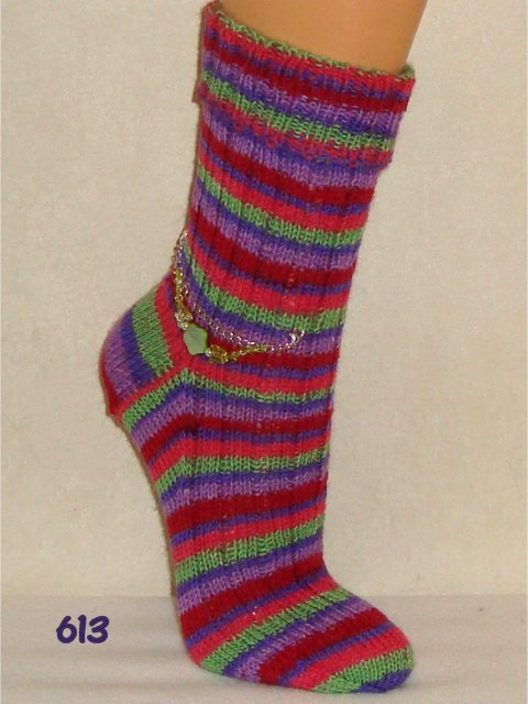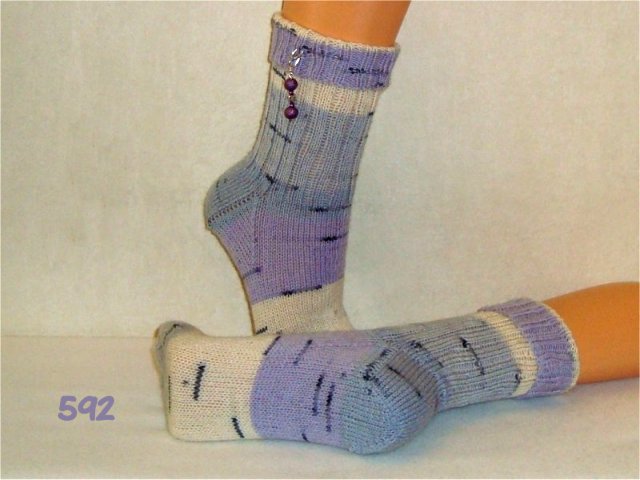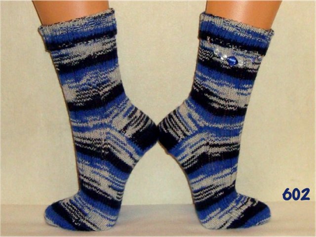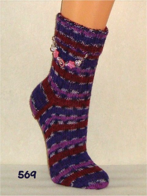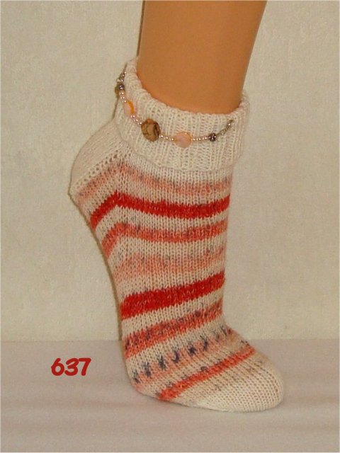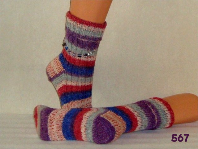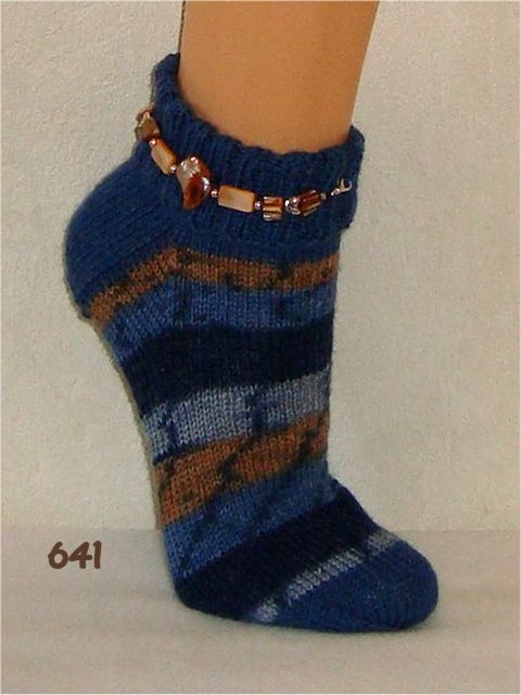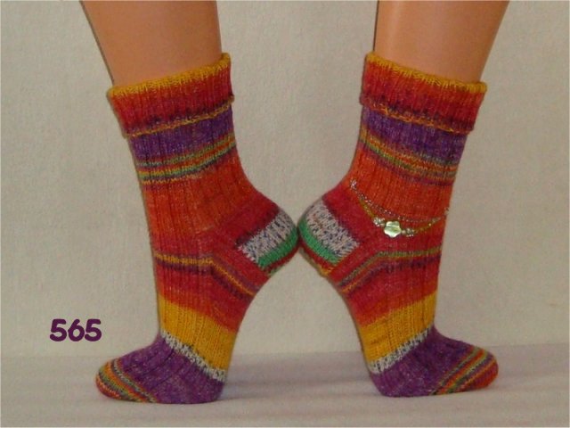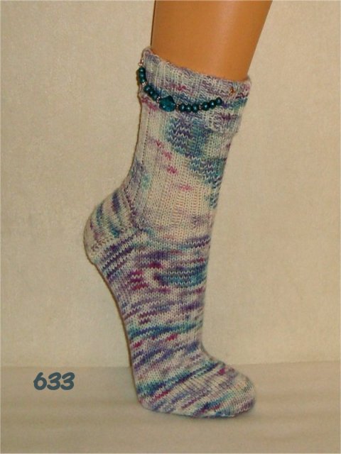 Hier sehen Sie einen kleinen Auszug meiner bisher gestrickten Damensocken. Wenn Sie etwas Ähnliches gestrickt haben möchten, beziehen Sie sich bitte auf die Nummer im Bild. So wie bei Fotos auf Nahrungsmitteln immer "Serviervorschlag" steht, sind diese Bilder für evtl. Strickaufträge auch nur Designvorschläge. Abgebildete Zusätze wie Sockenschmuck oder Dekoartikel gehören nicht dazu.