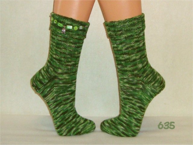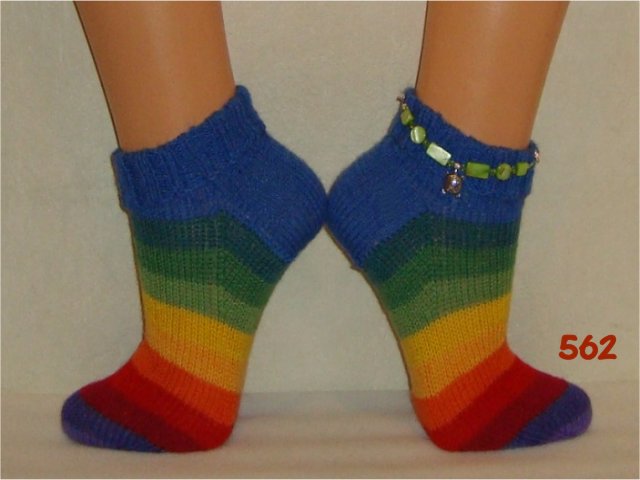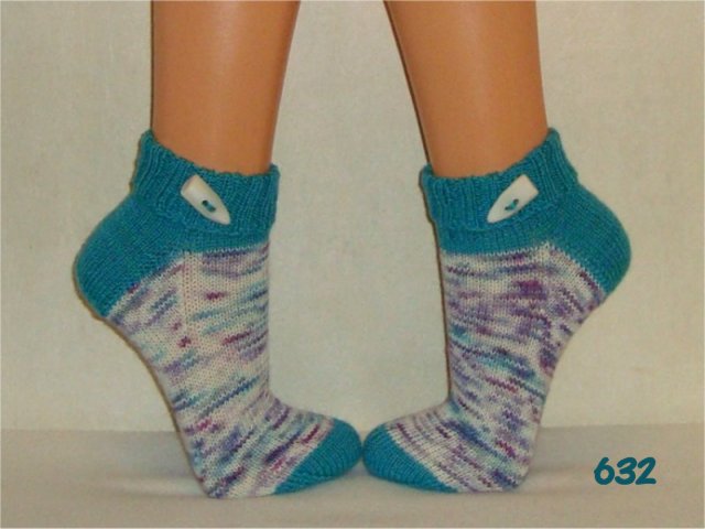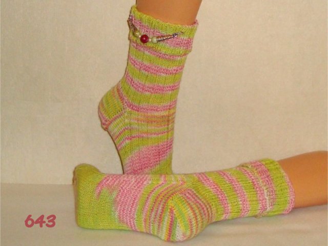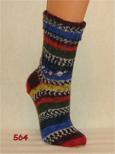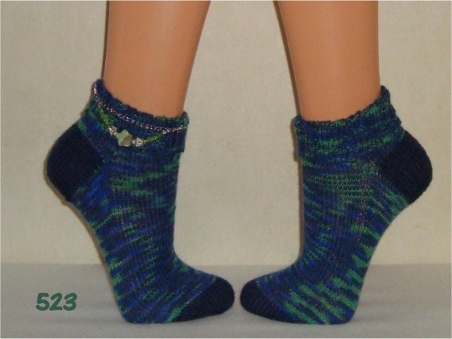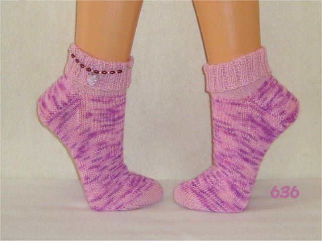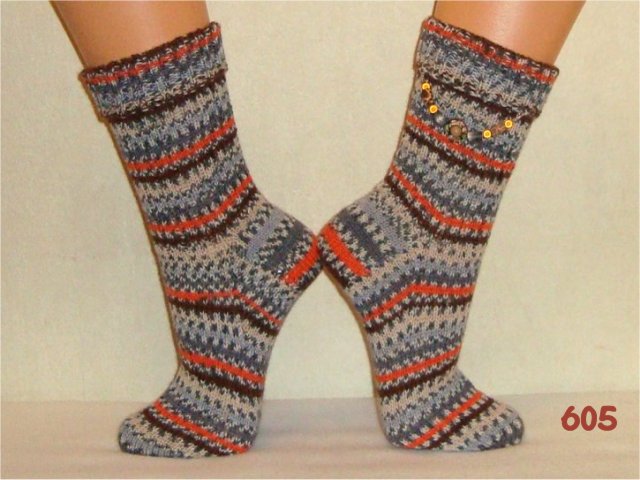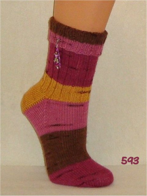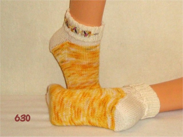 Hier sehen Sie einen kleinen Auszug meiner bisher gestrickten Damensocken. Wenn Sie etwas Ähnliches gestrickt haben möchten, beziehen Sie sich bitte auf die Nummer im Bild. So wie bei Fotos auf Nahrungsmitteln immer "Serviervorschlag" steht, sind diese Bilder für evtl. Strickaufträge auch nur Designvorschläge. Abgebildete Zusätze wie Sockenschmuck oder Dekoartikel gehören nicht dazu.